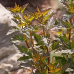 Physocarpus opulifolius 'Little Devil' oder auch Fasanenspierte ist ein zierlicher, aber trotzdem kompakt wachsender Kleinstrauch, der durch seine blutroten Blätter und die rötlich schimmernden Zweige jeden Hobbygärtner beeindruckt. Mit einer Wuchshöhe von etwa einem Meter bildet er im Garten oder Vorgarten einen wahrhaften Hingucker. Die weißen bis rosa Blüten, die von Juni bis Juli als Doldentrauben ausgebildet werden, stehen in einem hübschen Kontrast zu den roten Blättern. Die Blüten entwickeln zum Herbst hin kleine Balgfrüchte. Die roten Blätter wechseln im Sommer ihre Farbe zu rot-grün, im Herbst werden sie rot-orange. An einem sonnigen bis halbschattigen Standort fühlt sich Physocarpus opulifolius 'Little Devil' besonders wohl. Er kann bei frostfreier Witterung ganzjährig gepflanzt werden und ist, einmal angewurzelt, absolut winterhart. Der Boden sollte gut durchlässig und nährstoffreich sein. Schwere Böden können daher mit Sand oder Humus vor der Pflanzung gelockert werden. Als kleiner und filigraner Blütenstrauch kommt er durch seine außergewöhnliche Farbe in Einzelstellung hervorragend zur Geltung. Aber auch eine kleine Gruppe als Leitstauden in einem Staudenbeet kann gut mit anderen, etwas niedrigeren Gewächsen kombiniert werden. Wer kleine Hecken zwischen einzelnen Beeten pflanzen möchte, kann ebenfalls auf 'Little Devil' zurückgreifen.
