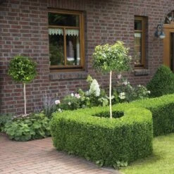 Nicht nur Kuchen, auch Birken adaptieren jetzt die beliebte "Lollypop"-Form. Die Neuzüchtung Betula pendula Magical Globe, auch 'Lollypop Birke' genant, bietet eine absolut einzigartige, unverwechselbare Optik. Sie kombiniert alle liebgewonnenen Eigenschaften ihrer Ahnen, den sommergrünen Sandbirken – etwa die elegante, weiße Borke, das frische Frühjahrsgrün und die anmutige Blätterform – mit charmanten, neuen Charakteristika. Die Betula pendula Magical Globe bleibt im Verhältnis zur Hängebirke sehr klein und eignet sich deshalb hervorragend für Kleingärten und sogar die Kübelbepflanzung auf Terrasse, Balkon oder im Duo als Einrahmung der Eingangstür. Weiterhin zeichnet die Lollypop Birke ihre kompakte, kugelförmige Krone aus, die im deutlichen Kontrast zu den nach unten weisenden Zweigen der nicht umsonst Hängebirke genannten Verwandtschaft steht. Dieser sehr kompakte Kronenaufbau bereitet gerade Kleinvögeln eine optimale Nistauflage. Das macht die Lollypop Birke zum doppelten Blickfang auch auf ansonsten baumlosen, kleineren Flächen, die bisher wenig Attraktivität für das Federvieh boten. Kombiniert mit einem dekorativen Vogelbad laden Sie so bald viele gefederte Freunde in Ihre grüne Oase. So schmal und zart die Betula pendula Magical Globe auch wirkt, ihre Abstammung von der robusten Sandbirke verspricht eine widerstandsfähige, pflegeleichte Pflanze – nicht zuletzt, weil die kompakte Form dem Gärtner auch noch den Baumschnitt erspart.
